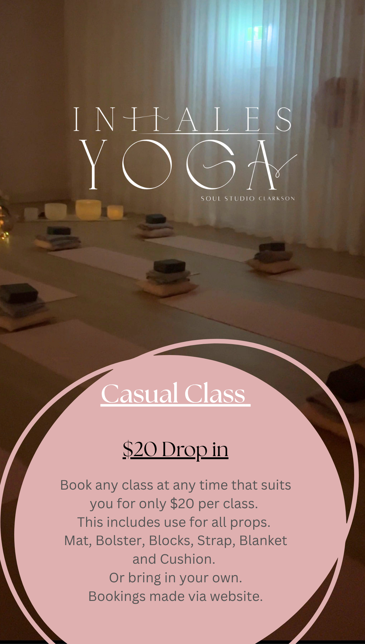 All my regular scheduled classes are held at the beautiful SOUL STUDIO space inside CRYSTAL CLARITY boutique in Clarkson in Key Largo Drive, the big outdoor shopping complex opposite Starbucks , beside the pet shop and salvos.